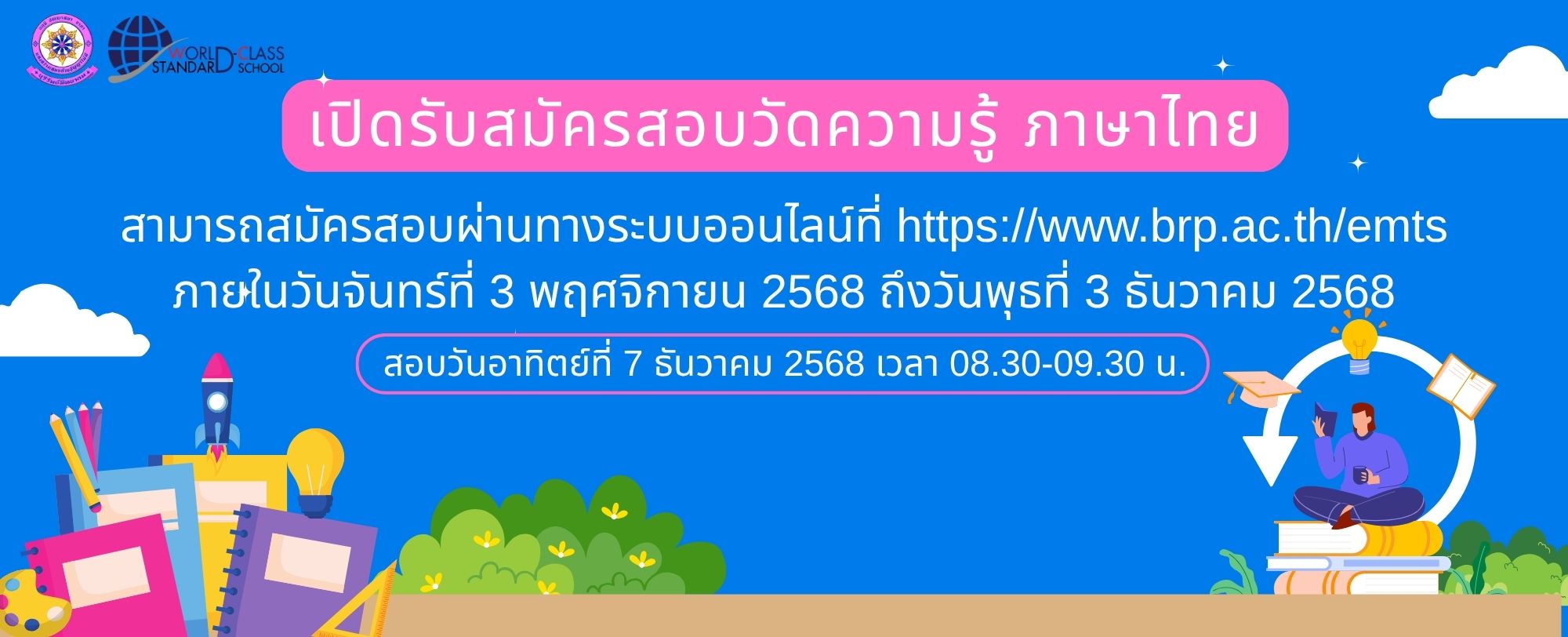 - เปิดระบบรับสมัครสอบวัดความรู้ภาษาไทย ประจำปีการศึกษา 2568" โรงเรียนบุรีรัมย์พิทยาคม จังหวัดบุรีรัมย์